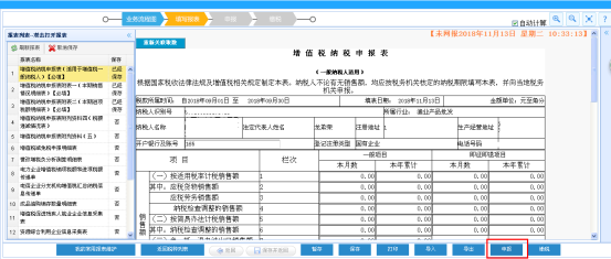 第二步:點(diǎn)擊稅種報表維護(hù)選擇需要報送的增值稅,在稅種列表里選擇一般納稅人增值稅,點(diǎn)擊“立即填表”,打開報表填數(shù)申報,如圖: