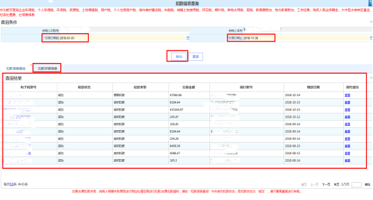 在查詢功能界面根據(jù)交易日期查詢可查詢出納稅人稅款扣款成功或失敗情況以及扣款類型,繳款日期等。