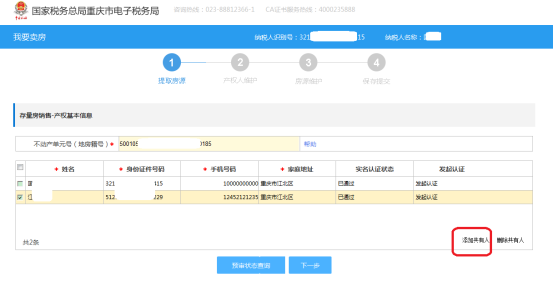 該房源有共有人的點擊“添加共有人”錄入共有人信息,沒有則不需要錄入。