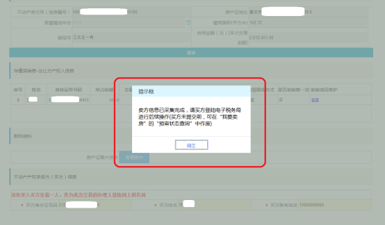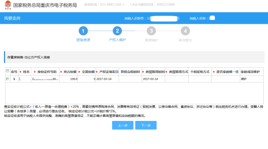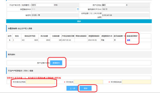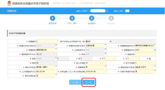 可查看本次房屋交易錄入的基本信息,也可點擊“上一步”重新維護。
