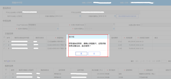 點(diǎn)擊“是”系統(tǒng)自動(dòng)帶出交易信息及稅款信息