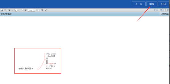 11、納稅人核定數(shù)據(jù)無誤后,點(diǎn)擊【申報(bào)】按鈕進(jìn)行申報(bào),CA用戶簽名后點(diǎn)擊【申報(bào)】。