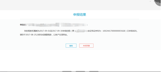 12、出現(xiàn)如圖所示申報結(jié)果,即申報成功。
