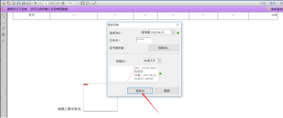 8、將申報表拉到最底下,點擊【納稅人簽名】下劃線上的空白處,彈出【簽名】頁面。