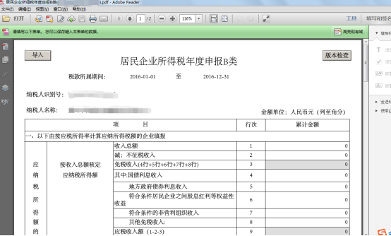 2、下載保存對(duì)應(yīng)申報(bào)PDF文件,用PDF格式打開。進(jìn)入表單頁(yè)面,系統(tǒng)提供了完善的表內(nèi)、表間的自動(dòng)計(jì)算和校驗(yàn)的功能,納稅人根據(jù)實(shí)際業(yè)務(wù)填寫數(shù)據(jù),即可完成計(jì)算。