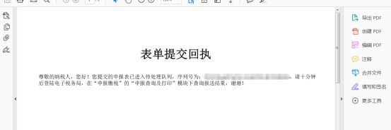 4、提交后出現(xiàn)如下圖界面,可查看表單提交回執(zhí),如下圖所示。