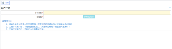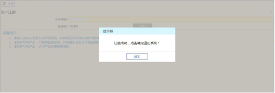 3、 納稅人收到短信驗證碼后,輸入驗證碼;點擊“注銷”按鈕,系統(tǒng)將提示注銷成功。
