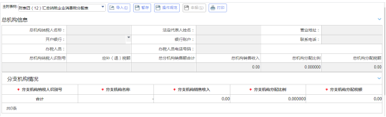 5、 在申報表相關(guān)信息欄進行錄入。填寫完畢,點擊 “保存”按鈕,總分機構(gòu)會根據(jù)分配比例自動計算總分機構(gòu)應納稅額。