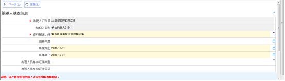 2、 選擇資料報(bào)送小類、調(diào)查年度、所屬期起止,填寫資料數(shù)量后點(diǎn)擊“下一步”。