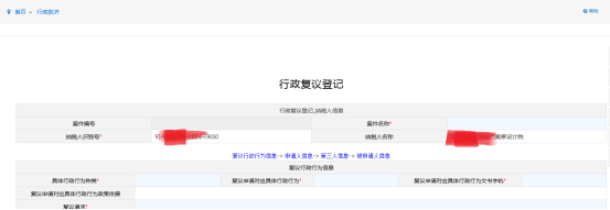 納稅人點(diǎn)開“行政救濟(jì)”模塊,填寫表中相關(guān)內(nèi)容,發(fā)起流程到稅務(wù)端審核。