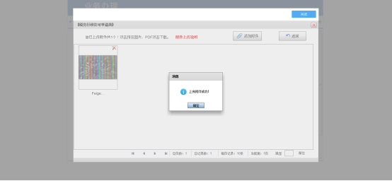 第四步:保存成功后進(jìn)行“添加附件”,選擇相應(yīng)的文件進(jìn)行上傳,點(diǎn)擊“開始上傳”,提示上傳附件成功,選擇所有上傳的文件,點(diǎn)擊“提交申請”。