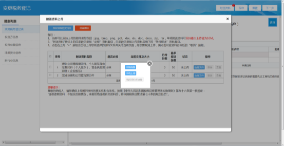 第四步:點(diǎn)擊變更稅務(wù)登記表,進(jìn)入填表,在操作中點(diǎn)擊增加按鈕,新增一行;點(diǎn)擊刪除,則刪除已存在的稅務(wù)登記信息;