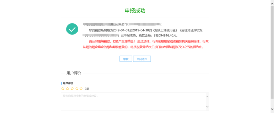 ? 申報(bào)成功,需要繳納稅款的點(diǎn)擊【繳款】,無需劃繳稅款的,點(diǎn)擊【關(guān)閉本頁】。