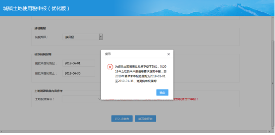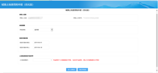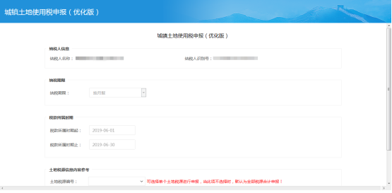 ? 進(jìn)入城鎮(zhèn)土地使用稅申報(bào)(優(yōu)化版)申報(bào)首頁面。