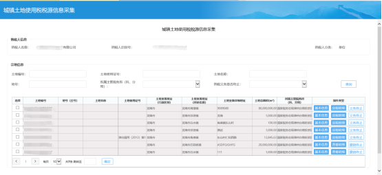 ? 需要采集或者維護(hù)稅源信息的,點(diǎn)擊【進(jìn)入采集】,則進(jìn)入城鎮(zhèn)土地使用稅稅源信息采集頁面,企業(yè)可根據(jù)實(shí)際情況采集或者修改稅源信息。