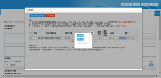? 選擇通過本地或手機(jī)上傳資料,也可選擇已上傳至資料庫的常用資料。