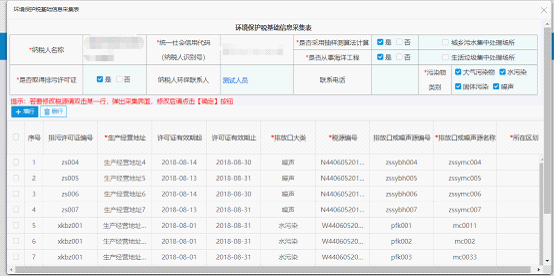 (6)提交采集【包括新增、修改、刪除】:完成新增、刪除、修改操作后,點(diǎn)擊環(huán)境保護(hù)基本信息采集表上的“保存”按鈕,提交采集數(shù)據(jù)。