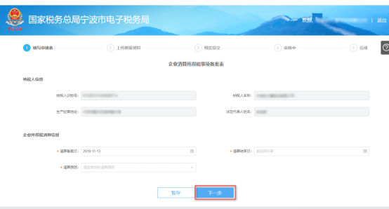 上傳附報資料信息,根據選擇按小規(guī)模納稅人納稅的情況說明章節(jié)中上傳附報資料信息進行上傳,上傳必報資料后點擊“下一步”。