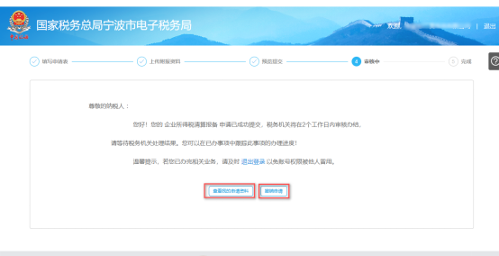 提交管理端稅務人員進行受理。點擊“查看我的申請資料”,查看對應的申請信息;點擊“撤銷”,可直接撤銷申請。