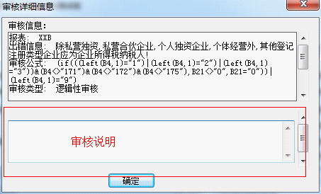 審核詳細(xì)信息中有文字說(shuō)明和公式說(shuō)明,報(bào)表中會(huì)將涉及到的表元標(biāo)紅或者標(biāo)黃。點(diǎn)擊“審核詳細(xì)信息”,根據(jù)審核詳細(xì)描述修改錯(cuò)誤數(shù)據(jù);若確認(rèn)無(wú)誤,在“填報(bào)說(shuō)明”中根據(jù)實(shí)際情況輸入說(shuō)明信息,即可通過(guò)該欄次審核。