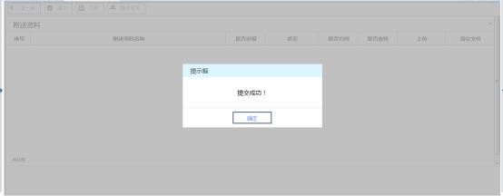 5、 點(diǎn)擊【提交】按鈕,系統(tǒng)將提示提交成功,該申請(qǐng)?zhí)峤坏蕉悇?wù)機(jī)關(guān)系統(tǒng)中,申請(qǐng)操作全部完成。