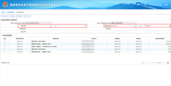 (4)打印點擊【我要查詢】—【申報信息查詢】—【申報信息查詢】選擇相應的時間段查詢即可。