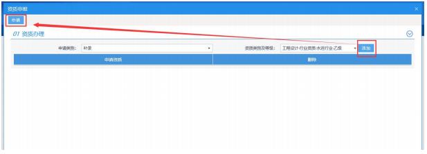 及資質(zhì)的類別、等級,點擊【添加】完成后,點擊左上角的【申請】按鈕