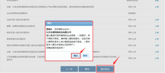點(diǎn)擊【上一步】按鈕,頁(yè)面跳轉(zhuǎn)到上一步,可對(duì)上一步的申請(qǐng)信息進(jìn)行修改。