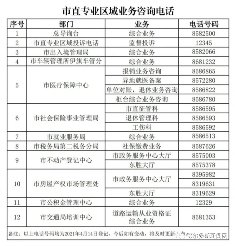 鄂爾多斯市政務(wù)服務(wù)中心市直專業(yè)區(qū)域業(yè)務(wù)咨詢電話