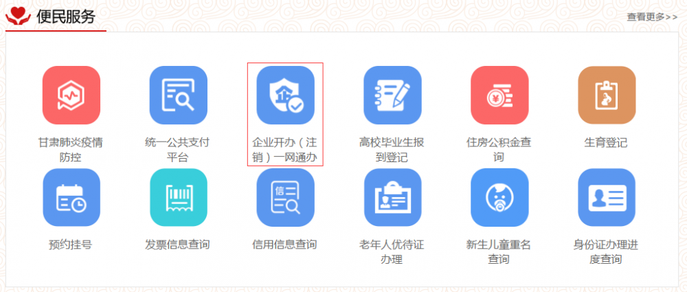 2.便民服務(wù)選擇“企業(yè)開辦(注銷)一網(wǎng)通辦”。