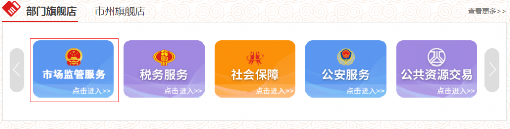 2.部門旗艦店選擇“市場監(jiān)管服務(wù)”;
