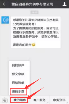 1.掃描二維碼關(guān)注蒙自四通泰興供水有限公司微信公眾號(hào)
