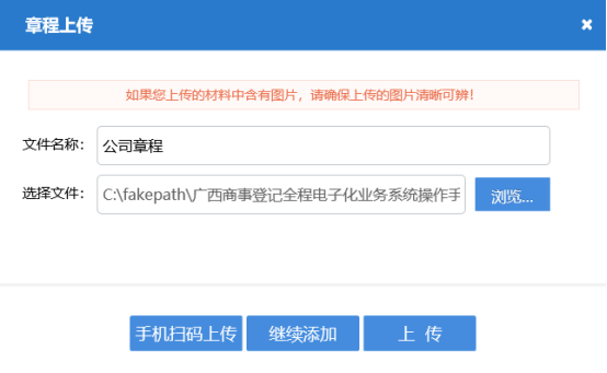 如果自動(dòng)合成的章程不能滿足您的需求,您可以通過手動(dòng)上傳進(jìn)行修改。注:上傳的格式需為png,gjf,jpg格式的圖片或者WORD,PDF文檔