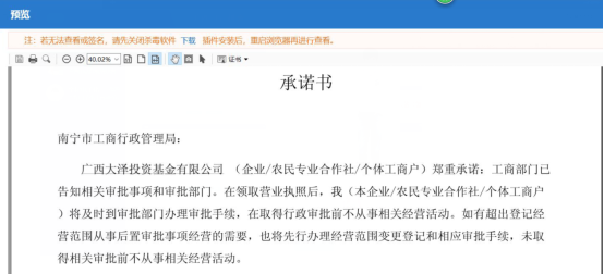 12、進(jìn)入簽名頁(yè)面。注:如果有多個(gè)投資人,南寧地區(qū)企業(yè)必須需要全部簽名,其它地區(qū)請(qǐng)自行咨詢企業(yè)市場(chǎng)監(jiān)督登記部門。