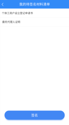 第十一步:申請人通過點擊首頁中的“我的簽名待辦”,進入申請列表頁面。選擇具體申請后,申請人查看相關待簽名材料并點擊“簽名”,輸入簽名密碼后點擊“確認”。如下圖: