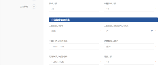財務(wù)負責人信息填寫后,點擊下一步,跳轉(zhuǎn)到其他信息采集頁面,如下圖: