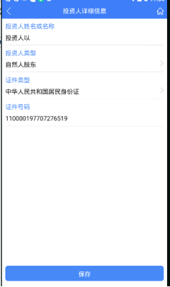 2、 填寫股東的信息,點擊“保存”,回到人員信息頁面