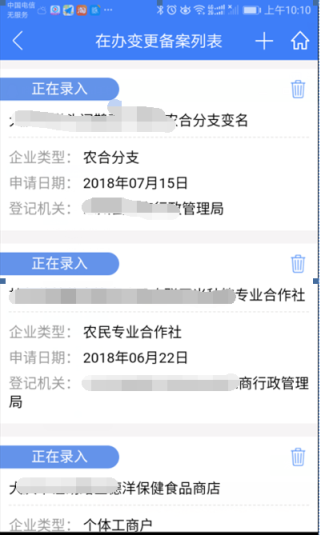 2、 選中企業(yè),辦理變更業(yè)務,進入辦理流程(如圖4) ;點擊垃圾桶圖標,刪除該企業(yè)變更辦理業(yè)務。