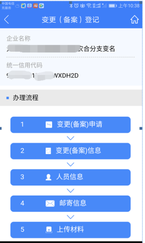 4、 點擊“保存并下一步”進入該流程步驟的下一步,按照 圖4 的流程步驟,這里會進入“變更(備案)信息”。