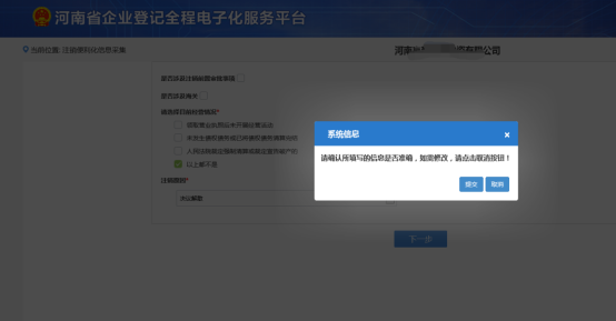 1.3  選擇企業(yè)正確注銷原因,點擊下一步;