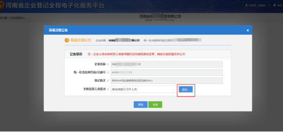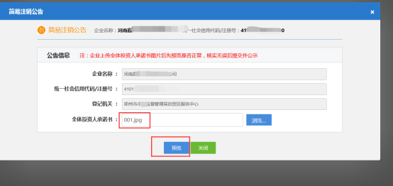 10.選擇要上傳的圖片,點擊預覽,發(fā)布債權(quán)人公告上傳圖片需要先預覽,確認無誤后點擊保存并公示,簡易注銷公告才會發(fā)布成功