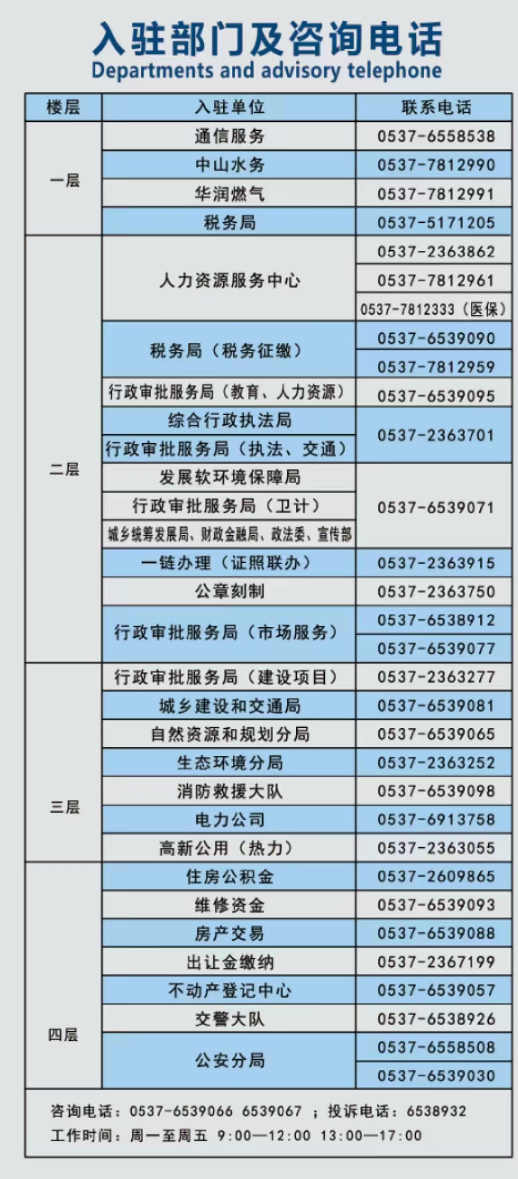 濟(jì)寧市各(區(qū))縣政務(wù)服務(wù)中心辦事大廳入駐單位窗口咨詢電話