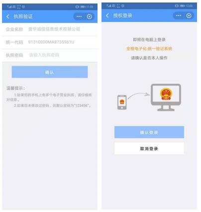 2)選擇電子營(yíng)業(yè)執(zhí)照進(jìn)行驗(yàn)證,驗(yàn)證通過(guò)后,點(diǎn)擊“授權(quán)登錄”,即可在電腦端登錄該企業(yè)。