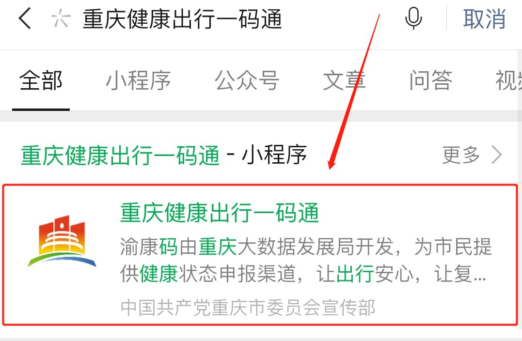 1.使用微信搜一搜搜索“重慶健康出行一碼通”,或掃描下方二維碼進入重慶健康出行一碼通小程序;