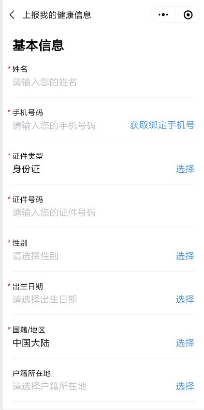 老人、兒童以及其他不熟悉線上操作或沒有智能手機等終端設(shè)備的人員,可由其共同居住的成年親屬代為線上申報。港澳臺和外籍人士可通過外籍人士通道提交個人身份信息,并與小程序進行身份綁定,經(jīng)后臺審核后線上申報。除上述人員和無法線上申報的人員外,可以線下申報,具體線下申報方式按各區(qū)縣相關(guān)要求執(zhí)行。
