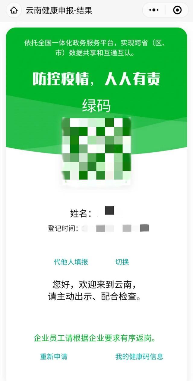 為落實《云南省應(yīng)對新冠肺炎疫情分區(qū)分級防控的實施意見》(省委省政府應(yīng)對疫情工作領(lǐng)導(dǎo)小組指揮部第10號通告)要求,運用大數(shù)據(jù)信息技術(shù)應(yīng)對復(fù)工復(fù)學(xué)人員入滇流動高峰,云南省正式上線應(yīng)用“云南健康碼”系統(tǒng),實時精準(zhǔn)掌握入滇人員總體健康狀況。所有擬入滇人員可掃描“云南健康碼”系統(tǒng)二維碼,或登錄“一部手機辦事通”,或通過云南省衛(wèi)生健康委網(wǎng)站、“云南衛(wèi)健委”微信公眾號掃碼或點擊相關(guān)鏈接,通過網(wǎng)絡(luò)申報個人健康信息,生成云南健康碼(紅、黃、綠三色),范圍覆蓋省內(nèi)所有民航、鐵路、公路、港口等場所。無法使用手機掃碼登記的人員,可填寫紙質(zhì)申報表。入滇人員憑健康碼或紙質(zhì)申報材料進入云南。