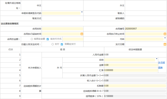 第三步:扣繳義務(wù)人類型根據(jù)實際情況自行選擇。選擇指定扣繳或法定源泉扣繳,均會彈出相應(yīng)的合同備案信息??勺孕行略?。