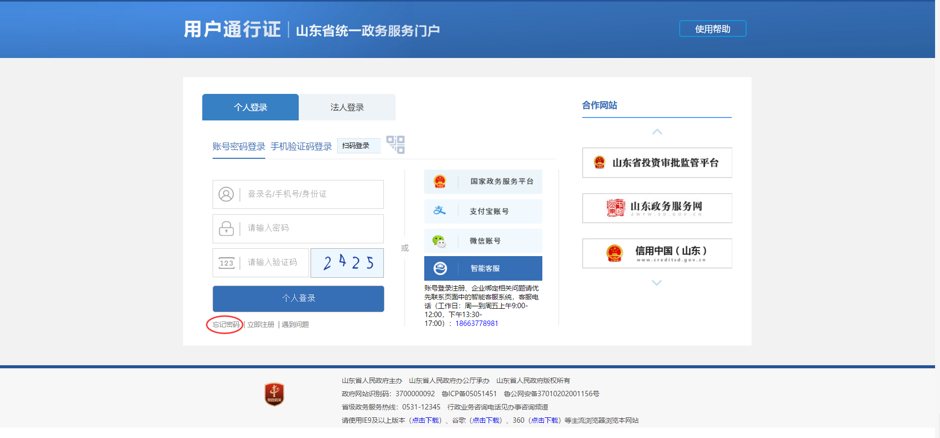 1.日照政務(wù)服務(wù)網(wǎng)個人賬號如果忘記登錄密碼,可以選擇個人登錄界面中的“手機(jī)驗證碼”登錄,登錄后進(jìn)入用戶空間進(jìn)行密碼修改。也可以在個人賬號登錄界面中選擇“忘記密碼”。