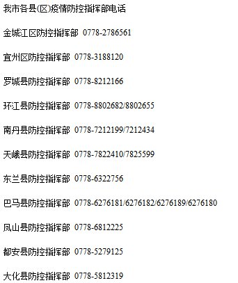 金城江區(qū)防控指揮部 0778-2786561