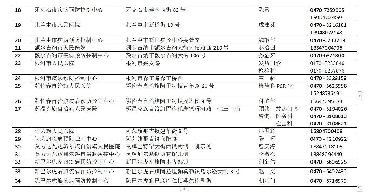 截至2020年12月9日,呼倫貝爾最新核酸檢測機構名單如下: